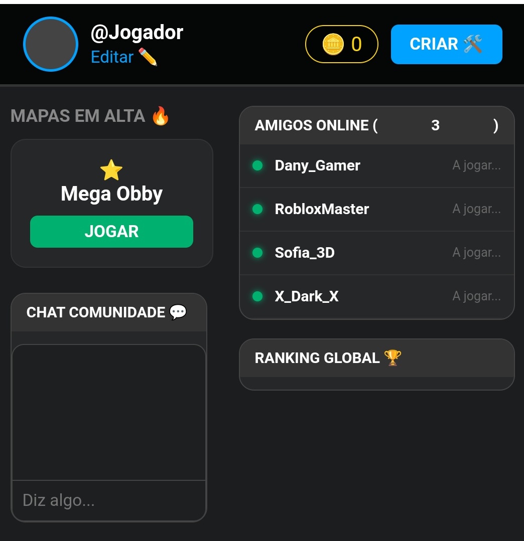 💬 Chat Global: Conversa com outros jogadores em tempo real enquanto exploras o menu principal.